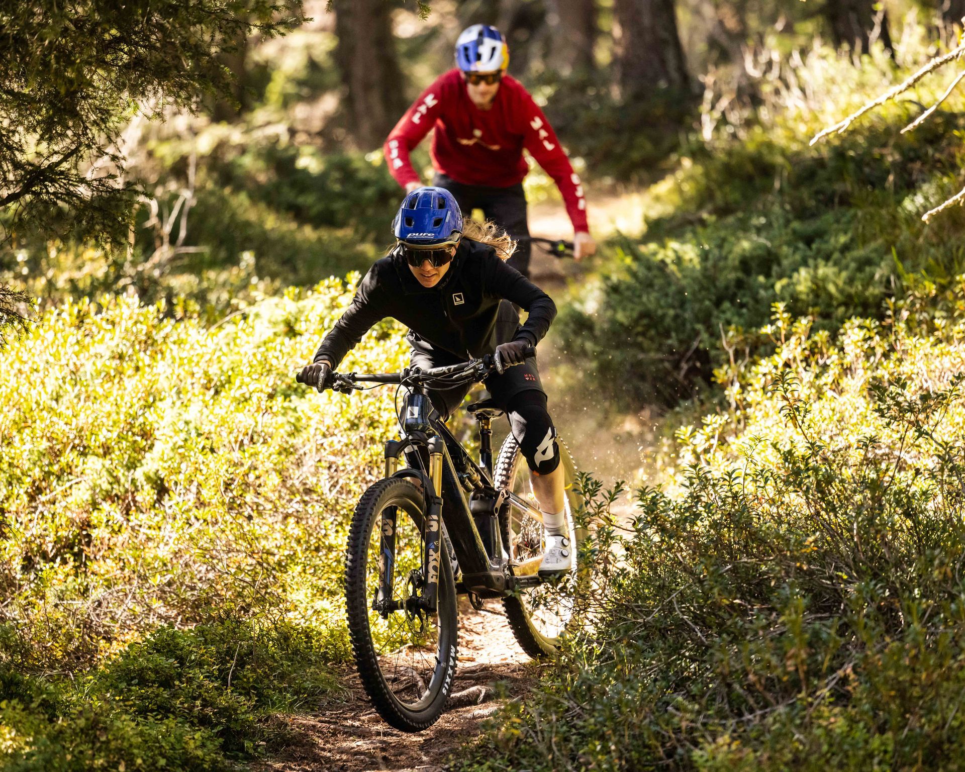 Mit maximaler Power durch die Bergwelt. Dieses Motto lebt unser HAIBIKE ALLMTN CF 9 mit jeder noch so kleinen Schraube. Ein sportives eMTB, das mit maximaler All-Mountain-Performance überzeugt – und mit cleverem Engineering. Denn um das Beste aus dem kraftvollen Bosch Performance CX Antrieb herauszuholen, haben wir den Motor gedreht im Carbon-Rahmen verbaut. Das sorgt für ein besseres Wärmemanagement und mehr Effizienz, wenn es bei deinen Touren richtig zur Sache geht. Dazu kommt eine eigens entwickelte Kinematik mit liegendem Dämpfer, die zusammen mit dem Mullet-Laufradmix und der 160 mm RockShox Gabel auch ruppige Downhill-Runs in flowige Waldautobahnen verwandelt. Ausdauernd präsentiert sich die 800 Wh Batterie, die du mit einem optionalen Range Extender um weitere 250 Wh erweitern kannst. Die griffigen SRAM DB8 Scheibenbremsen runden das starke All-Mountain-Setup ab. Ideale Voraussetzungen für alpine Abenteuer mit maximaler Power.